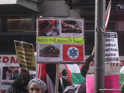 You can find all the pictures taken (that came out) at http://picasaweb.google.com/BermanPost.com/1112009AntiIsraelProtest If anyone reads Arabic, there are some signs that need translating there. Any help would be appreciated, as I am interested to know what they say.